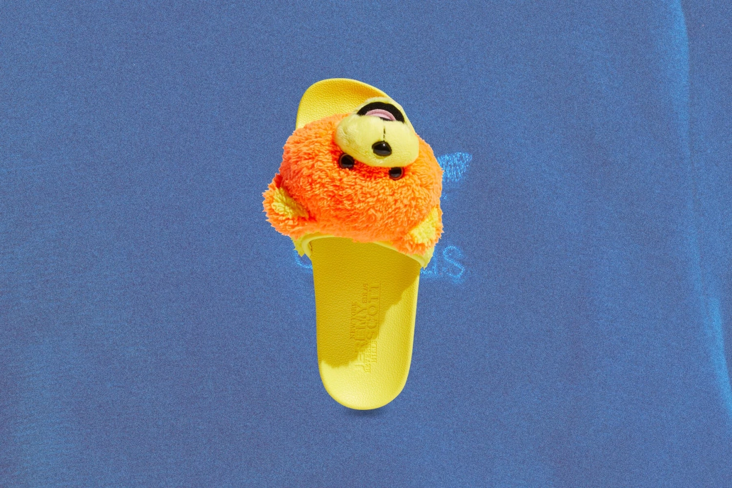 Eccentric designer Jeremy Scott collides with Adidas Originals once again with the Adilette Teddy. The slide’s plush stuffed animal appearance is the center of the silhouette. A molded EVA footbed provides optimal comfort, while the embossed Jeremy Scott hit on the heel completes the design.