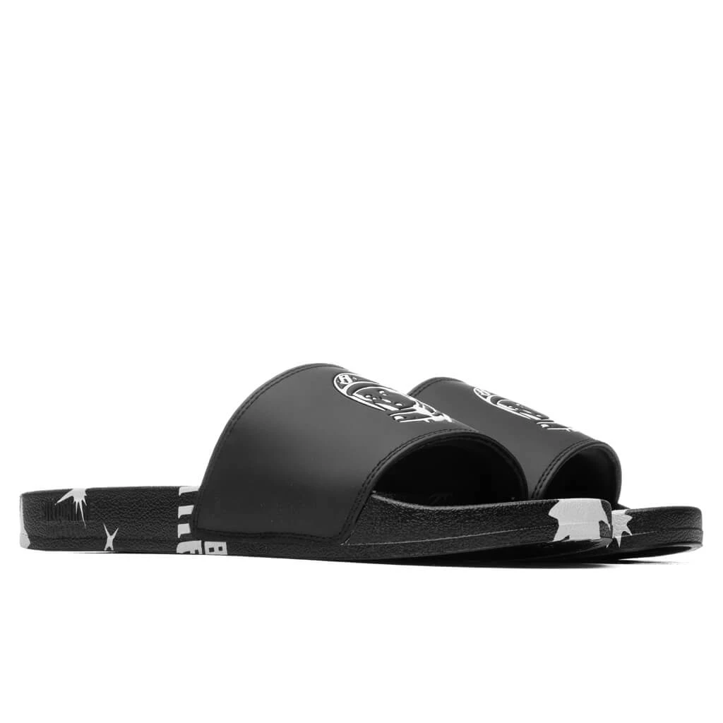 Shining a light on rendered branding, the Space Walk Slides are ideal for warmer seasons. A polyurethane base is designed with synthetic leather for a comfortable fit. The signature astronaut motif is placed across the front for a distinct look.ย