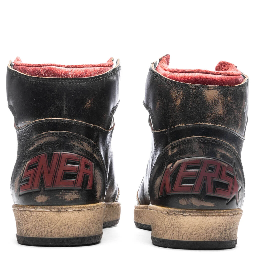 The Golden Goose Sky Star makes an impression with its premium aesthetic. The sneaker features a glossy leather upper and is treated with a distressed and worn-out effect. A metallic leather star and heel tab are placed, while signature branding is printed at the ankle. The nylon tongue and metallic leather toe provide additional dimension. The rubber outsole underneath supports the remainder of the look.
