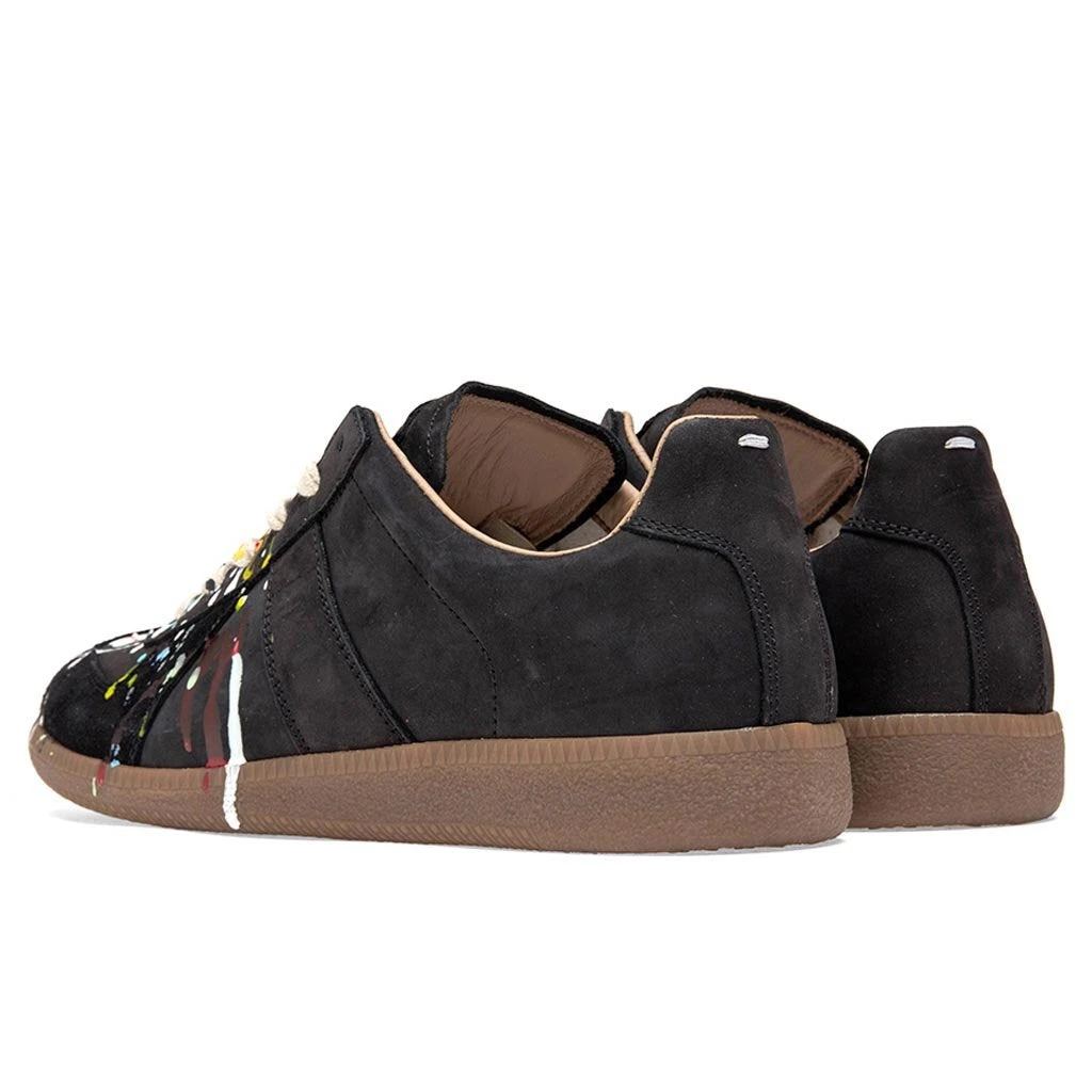 The latest design for the Replica Low Top showcases a paint splatter front amongst the toe cap. An all-black suede upper is met with a gum rubber sole, accented with pure-white cotton laces. Exposed stitching is found throughout the suede as well as a Maison Margiela patch upon the tongue.